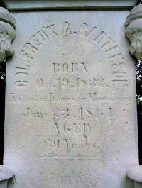 COL. FRED'K A. BARTLESON BORN Oct 19, 1822. Killed at Kenesaw Mountain June 23, 1864 AGED 30 Years.