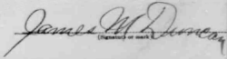 James M. Duncan of Wheaton, MO registered for the draft at Wheaton, MO on 5 June 1917. He was 27 years old, born 1 Feb 1890 at Wheaton, MO, single, Caucasian. He had no dependants nor military experience. Occupation self-employed farmer. Claimed exemption for debt-mortgage on farm. Described as tall, medium build, blue eyes, brown hair, not bald, no impairments. Reg. No. 55, Call 1117. (Ancestry.com* - image of World War I Draft Registration Card) Signature on card: