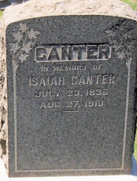 Isiah Canter, b. 23 July 1836, d. 27 Aug 1910, "Husband of Eleanor Jane Canter", buried at All Faith Episcopal Church (Huntersville, MD). (Tice* :98)