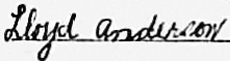 1930 Federal Census (1930.04.01) Dist. 5, St. Mary's Co., MD - ED 9, Sh 12(97)A, Ln 18, 203/203 - Anderson, Lloyd H. Head, 43 year old married white male, first married at 41. Owns his non-farm home valued at $1200. Can read & write, speaks English. He & parents born in Maryland. Occupation Fireman at Steam Shovel, drawing wages. Not a veteran. -----, Mary O. Wife, 20 year old married white female, first married at 18. Can read & write, speaks English. She & parents born in Maryland. Occupation None. -----, Paul H. Son, 1 1/12 year old white male. He & parents born in Maryland. Lloyd Henry Anderson of Mechanicsville, RFD#2, St. Mary's Co., MD, registered for the draft in 1942. He was 54 years old, born 24 Oct 1887 in St. Mary's Co., MD, had no phone. Person always knowing is address was Briscoe Anderson of same address. Occupation self-employed farmer near Mechanicsville, St. Mary's Co., MD. Serial No. U310. (Reverse of card not available at ancestry.com* as of 3 Sept 2006). (World War II Draft Registration Card) Lloyd Anderson, SSN 217-36-7297 Born 24 Oct 1886 Issued MD (1955-56) Last Residence 20659 Mechanicsville, St. Mary's Co., MD Died Apr 1972 (SSDI*)