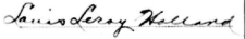Louis Leroy Holland of Welcome, Osage Co., Mo. registered for the draft at Welcome, MO on 5 June 1917. He was 21 years old, single, Caucasian, born 12 March 1896 at Welcome, MO. Occupation Farmer, employed by John Holland of same address. Requested deferment for "epilepisy." Described as of medium height & build, gray eyes, dk. brown hair, not bald, "at times afflicted with epilepsy." Form #491, Card #3. (Ancestry.com* - image of World War I Draft Registration Card) Signature on card: