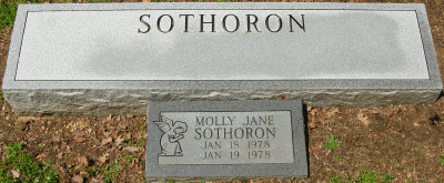 Sothoron Molly Jane [Male] b. 18 JAN 1978 - d. 19 JAN 1978 All Faith Episcopal, Huntersville, St. Mary's Co., MD