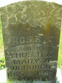 THOS. R. Jr. SON OF THOS R. & MARY A. BURROUGHS 1927-1929