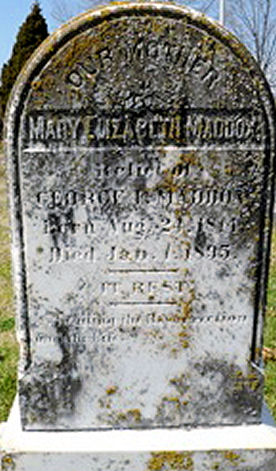 OUR MOTHER MARY ELIZABETH MADDOX wife of GEORGE F. MADDOX Born Aug 24, 1814 Died Jan. 1, 1895 AT REST
