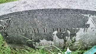- Hugh Robert Hunter, 52 year old white male, living on Cherry St., Oxford, Granville Co., NC for 14 years, married to 52-year-old Mrs. Kathleen Kearney Hunter, died at Near Public Highway at Walnut Grove (Rural), Granville Co., NC at about 2 P.M. on 9 Feb 1949. He was born on 18 July 1916 in Davie Co., NC to Samuel K. Hunter & Minnie Foster, both born in Davie Co., NC. Occupation was Bridge Worker for State Hightway Commission. Informant was Mrs. Hugh Hunter of same address. - Cause of death was Shotgun Wound due to Suicide. "Shot entered just above heart." Certified by Coroner, F. Earle Hunt of Oxford, NC on 11 Feb 1949. - Burial was at Elmwood Cemetery, Oxford, N.C. on 11 Feb 1949. Arrangements were by Upchurch & Currin of Oxford, N.C. (Certificate of Death, North Carolina State Board of Health. Registration Dist. #39-00, Certificate #22. stamped #2785)