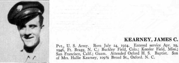 Kearney James Carlton [Male] b. 24 JUL 1924 Granville Co., NC - d. 13 AUG 1990 Greensboro, Guilford Co., NC