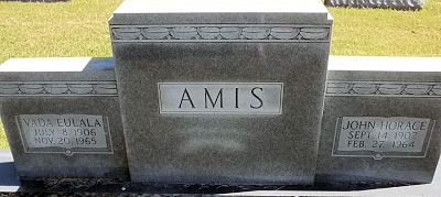 John Horace Amis & Vada Eulala Campbell were married in Giles Co., TN on 8 Aug 1926. (Ancestry.com* - Tennessee State Marriages)