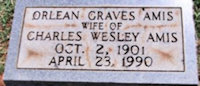 ORLEAN GRAVES AMIS WIFE OF CHARLES WESLEY AMIS OCT. 2, 1901 APRIL 23, 1990