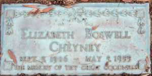 ELIZABETH BOSWELL CHEYNEY SEPT. 5, 1906 - MAY 5, 1955 THE MEMORY OF THY GREAT GOODNESS