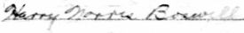 Harry Norris Boswell of Ballston, Alex. Co., VA registered for the draft at Alexandria Co., VA on 10 Sept 1918. He was White, 20 years old, born 15 April 1989 in USA. Occupation Pay Clerk for Washington So???, Potomac Yards, Alexandria, VA. Nearest relative was William Boswell of Ballston, VA. Described as of medium height & build, gray eyes, lt. br. hair. No impariments noted. Serial #2643, Order #a2993. (Ancestry.com* - image of World War I Draft Registration Card) Signature on card: