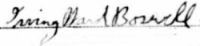Irving Ward Boswell of 1527 D St., S.E., Washington, D.C. registered for the draft at Local Board 5, Washington, DC on 18 June 1918. He was 21 years old, born 7 Sept 1896 at Ballston, VA. Father was born in Maryland. Employed by R.B. Manowitch, builder of Schubert Theatre, Philadelphia. Nearest relative was Mrs. Lilian (sic) Boswell of same address. Described as tall, of medium build, gray eyes, black hair, no impairments noted. Serial #266, Registration #271. (Ancestry.com* - image of World War I Draft Registration Card) Signature on card: