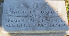 WILLIS E. HUNDLEY OHIO SEAMAN 1 CL. U.S.N.R AUG 1, 1925 - JULY 24, 1944